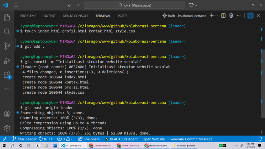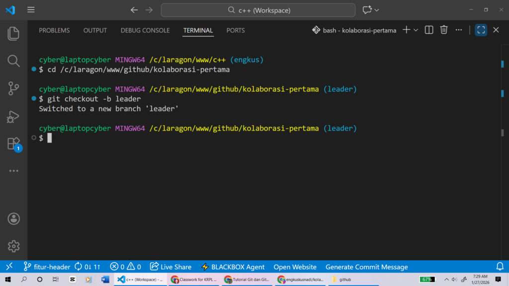 STEP 7 – Mengerjakan File Berbeda (Aman Tanpa Conflict)